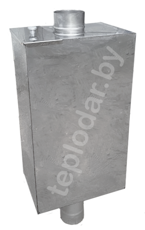 Бак устанавливается на основание дымохода, вода нагревается за счет разогрева внутренней трубы. Бак имеет один сливной штуцер снизу и оснащен крышкой, расположенной сверху, для заполнения водой (заливная крышка и сливной штуцер расположены на одной стороне). Устанавливается как на банную печь для нагрева воды в бане, так и на отопительную печь для нагрева воды в отапливаемом помещении. Диаметр дымохода 115 мм. Труба у бака - нержавейка AISI 304 толщиной 1,0мм, дно бака - нержавейка AISI 430 толщиной 1,0мм, стенки бака - нержавейка AISI 430 толщиной 0,8мм.